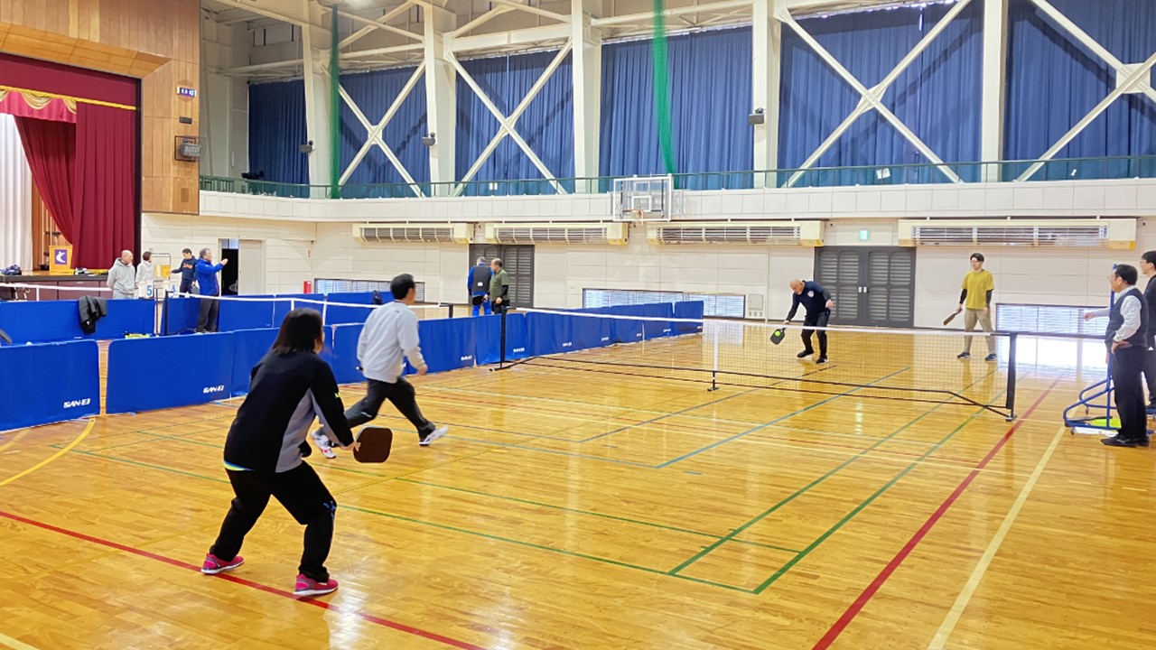 講師には「ピックルボールやまがた」の山上歳則氏を招きました。経験者のレベルに応じてコートを分け、寒さを吹き飛ばす熱い交流となりました。